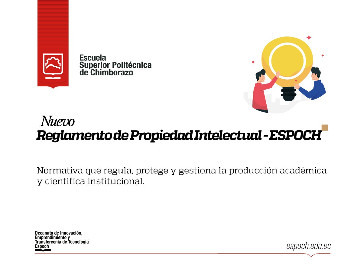 La Escuela Superior Politécnica de Chimborazo aprobó e implementa su nuevo Reglamento de Propiedad Intelectual, una normativa orientada a regular, proteger y gestionar de manera integral las producciones académicas, científicas