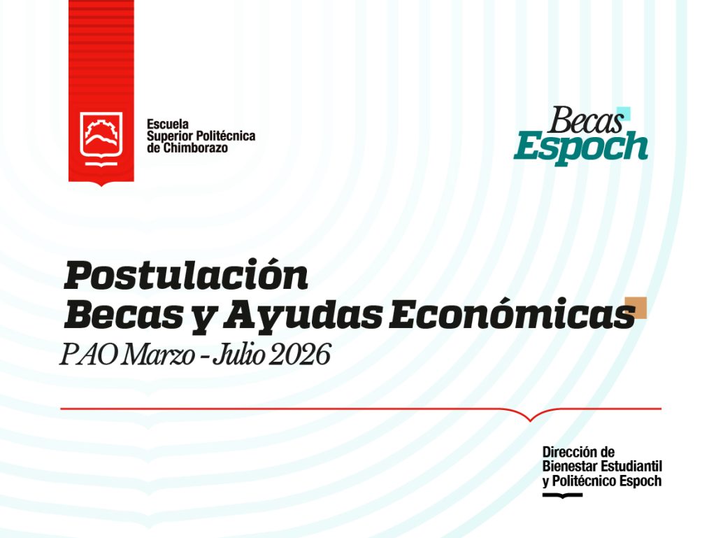 La Escuela Superior Politécnica de Chimborazo informa a la comunidad estudiantil de grado que se encuentra habilitado el proceso de Becas y Ayudas Económicas, orientado a garantizar la permanencia, equidad y bienestar de los estudiantes durante el período académico marzo – julio 2026.