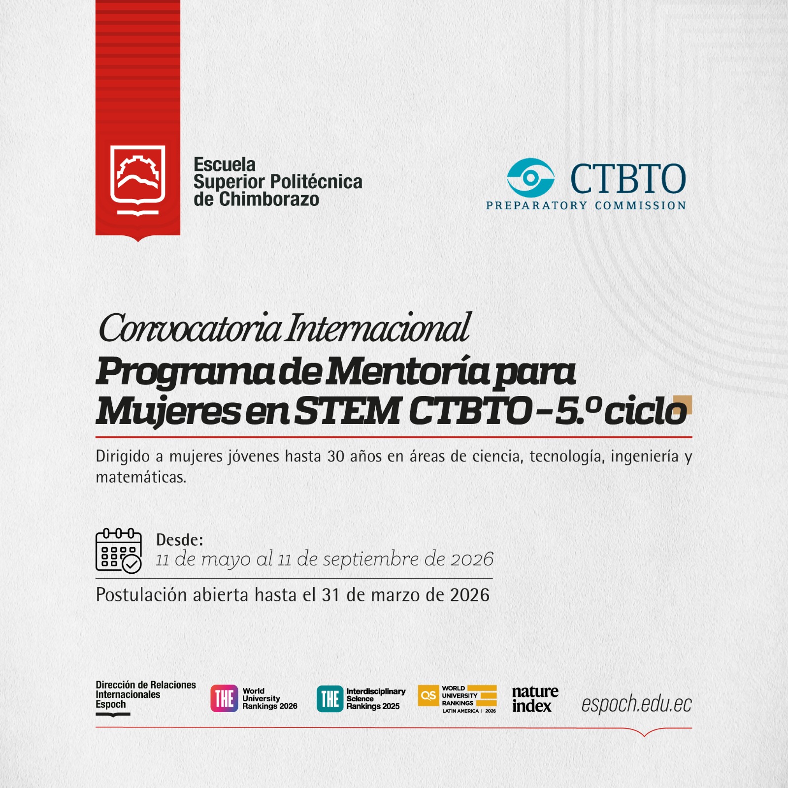 En este contexto, la ESPOCH difunde el arte oficial de la convocatoria dirigido a docentes interesados en participar en este proceso, así como la documentación correspondiente para su revisión.