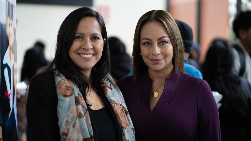 Fressia Pazmiño Santillán, directora de Relaciones Internacionales, con una de las expositoras.