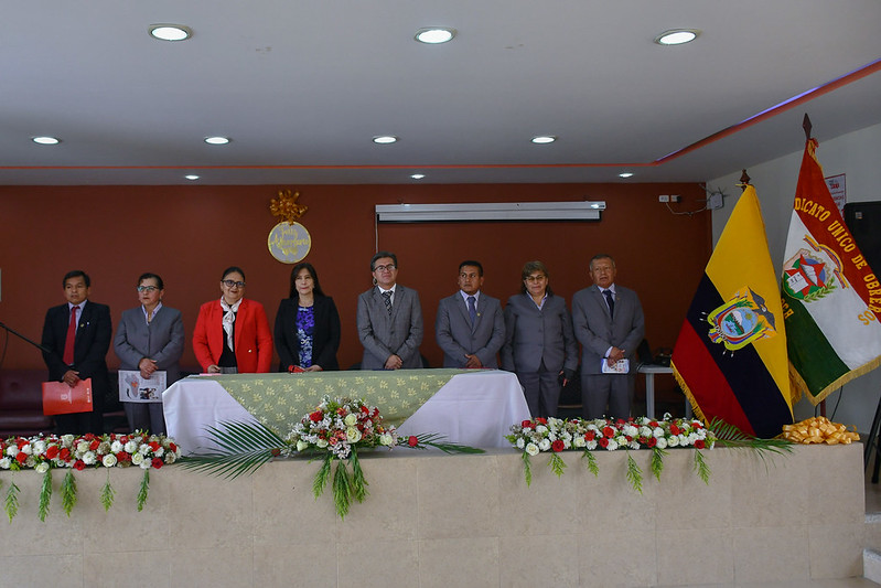 El acto contó con la presencia de las principales autoridades de la institución: Ing. Jenny Basantes Ávalos, vicerrectora Académica; Ing. Pablo Vanegas Peralta, vicerrector de Investigación y Posgrado; Ing. Landy Ruíz, vicerrectora Administrativa; así como miembros de la directiva sindical encabezados por su secretario general, Marco Agualsaca.