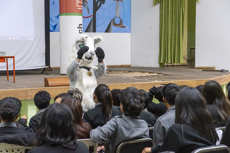 Uno de los momentos más emotivos de la jornada fue la presentación de “Pocho”, la mascota oficial de la ESPOCH, quien arrancó sonrisas, aplausos y entusiasmo entre los estudiantes, reforzando el sentido de identidad y cercanía de la institución con la comunidad educativa.