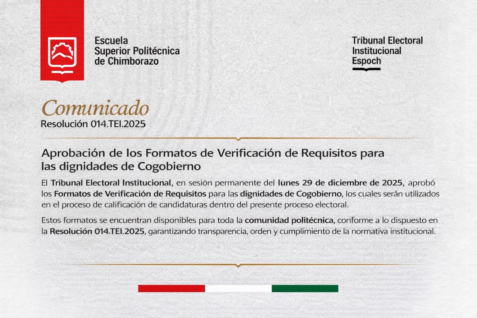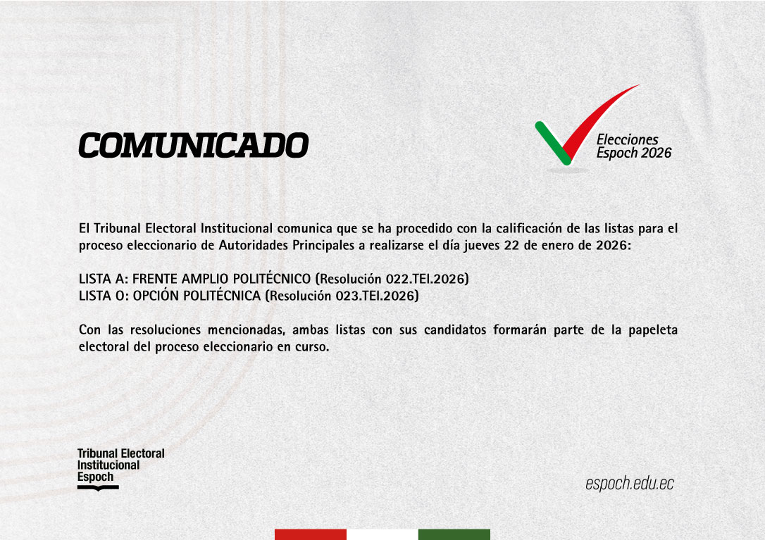 El Tribunal Electoral Institucional comunica que se ha procedido con la calificación de las listas para el proceso eleccionario de Autoridades Principales a realizarse el día jueves 22 de enero