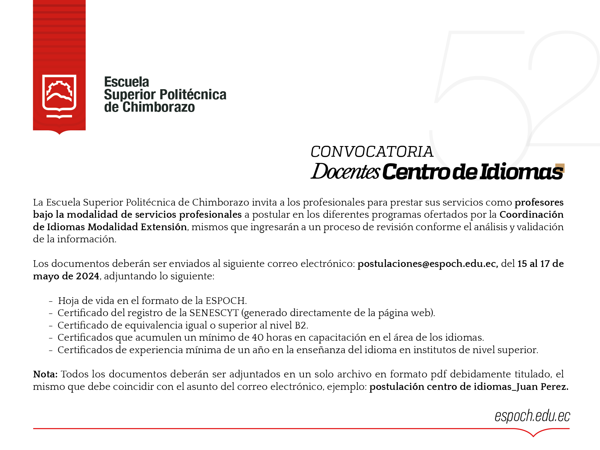 CONVOCATORIA DOCENTES CENTRO DE IDIOMAS
