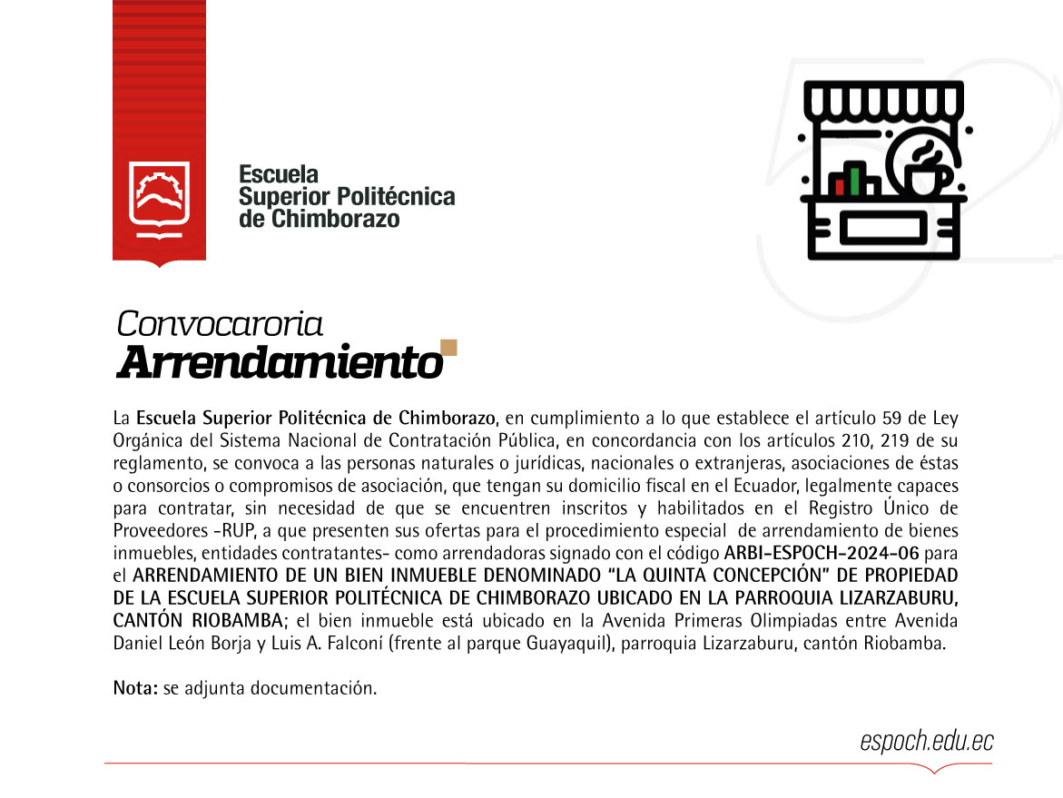 Adjuntos: TERMINOS DE REFERENCIA_Quinta Concepción Resolución_de_inicio_de_proceso_no._036 PLIEGOS_ARBI-ESPOCH-2024-06_legalizado ACTA_DE_CALIFICACIÓN_ARBI_06