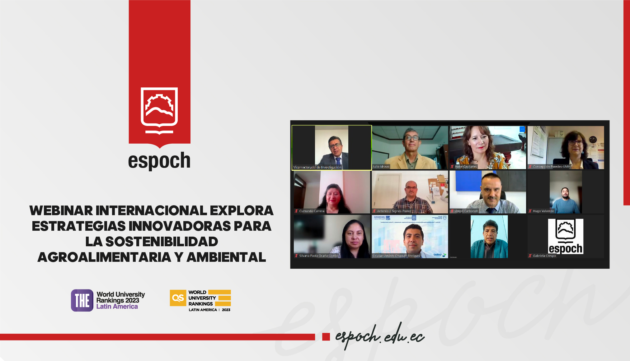 La Escuela Superior Politécnica de Chimborazo – ESPOCH y la Universidad Miguel Hernández – España, llevaron a cabo el webinar titulado «Sostenibilidad Agroalimentaria y Ambiental: Estrategias Avanzadas y Técnicas Innovadoras».