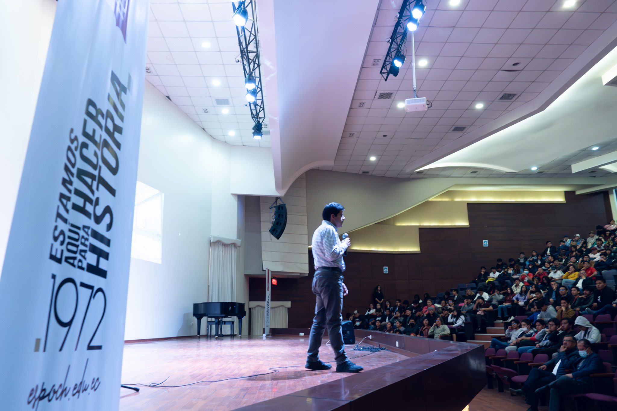 En el auditorio Dr. Romeo Rodríguez Cárdenas de la ESPOCH se llevó a cabo un conversatorio con el rector institucional Ing. Byron Vaca Ph.D. El viernes 7 de julio se