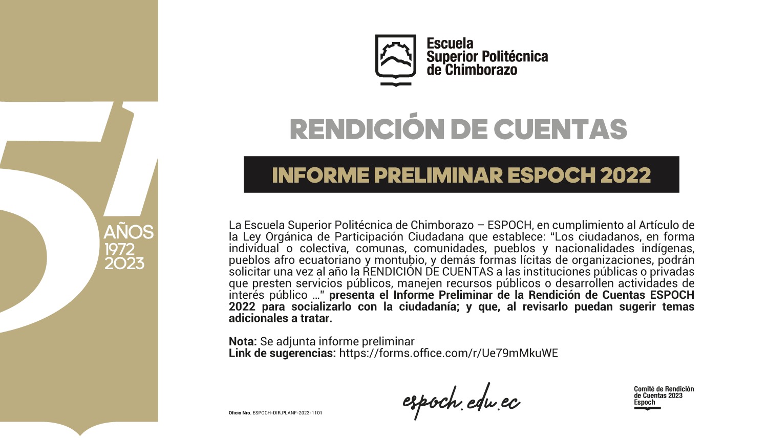 Rendición de Cuentas, Informe Preliminar ESPOCH 2022