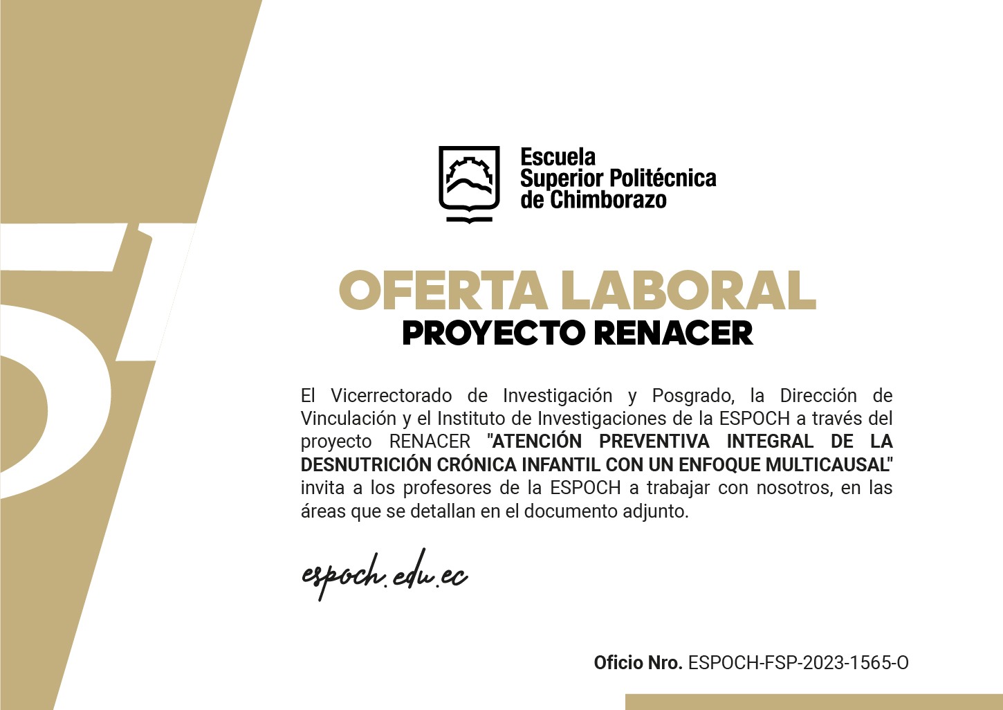 El Vicerrectorado de Investigación y Posgrado, la Dirección de Vinculación y el Instituto de Investigaciones de la ESPOCH a través del proyecto RENACER «ATENCIÓN PREVENTIVA INTEGRAL DE LA DESNUTRICIÓN CRÓNICA