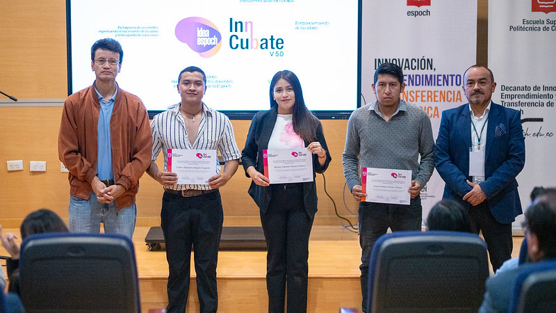 En este contexto, se realizó la graduación de 5 grupos politécnicos que concluyeron la cuarta edición del programa Idea ESPOCH InnCubate que desarrolló emprendimientos con base tecnológica: Inteligencia artificial para optimización de reclutamiento y selección de talento; Yaku life; Mantenimiento de motores eléctricos con inteligencia artificial, SPRIA, Find a Job.